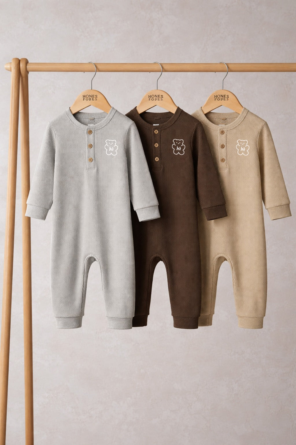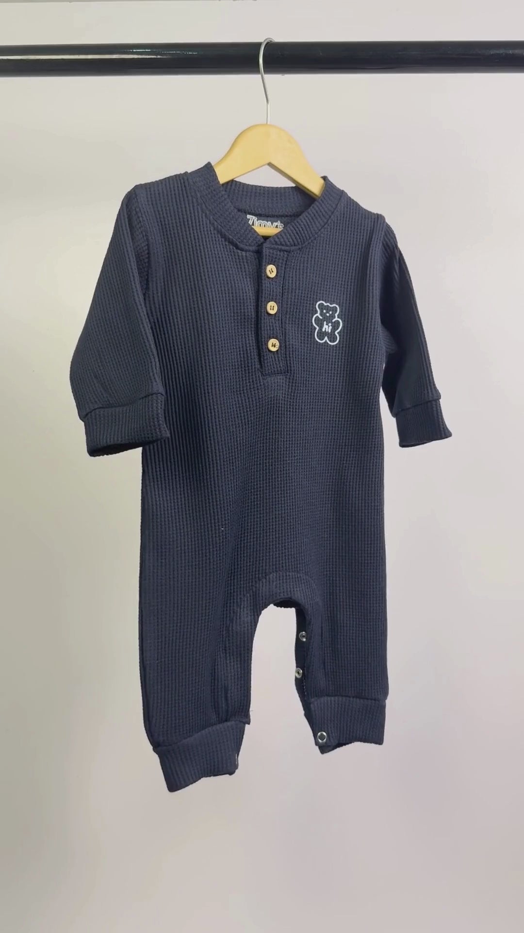 Waffle Knit Thermal Romper – (Dusty Blue)