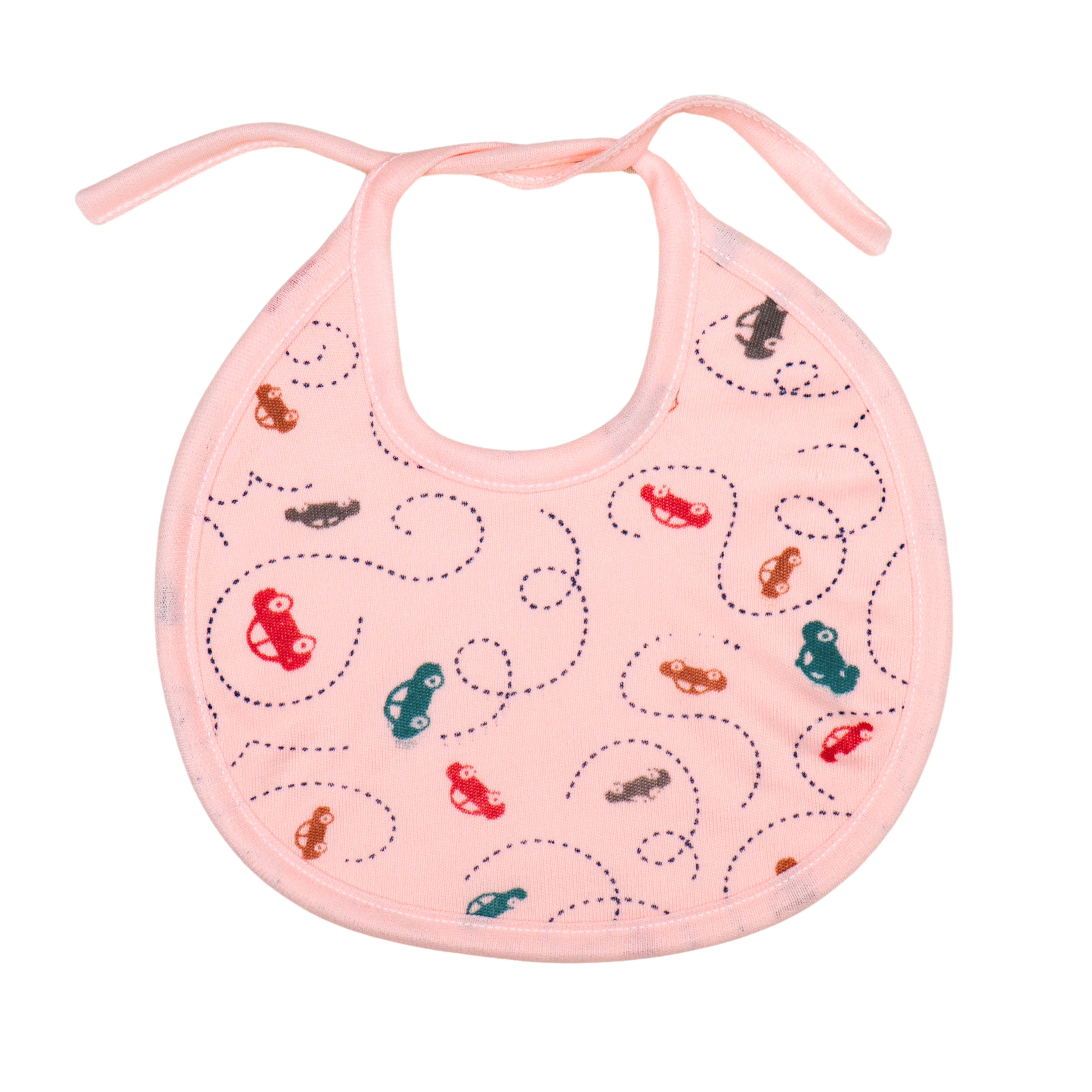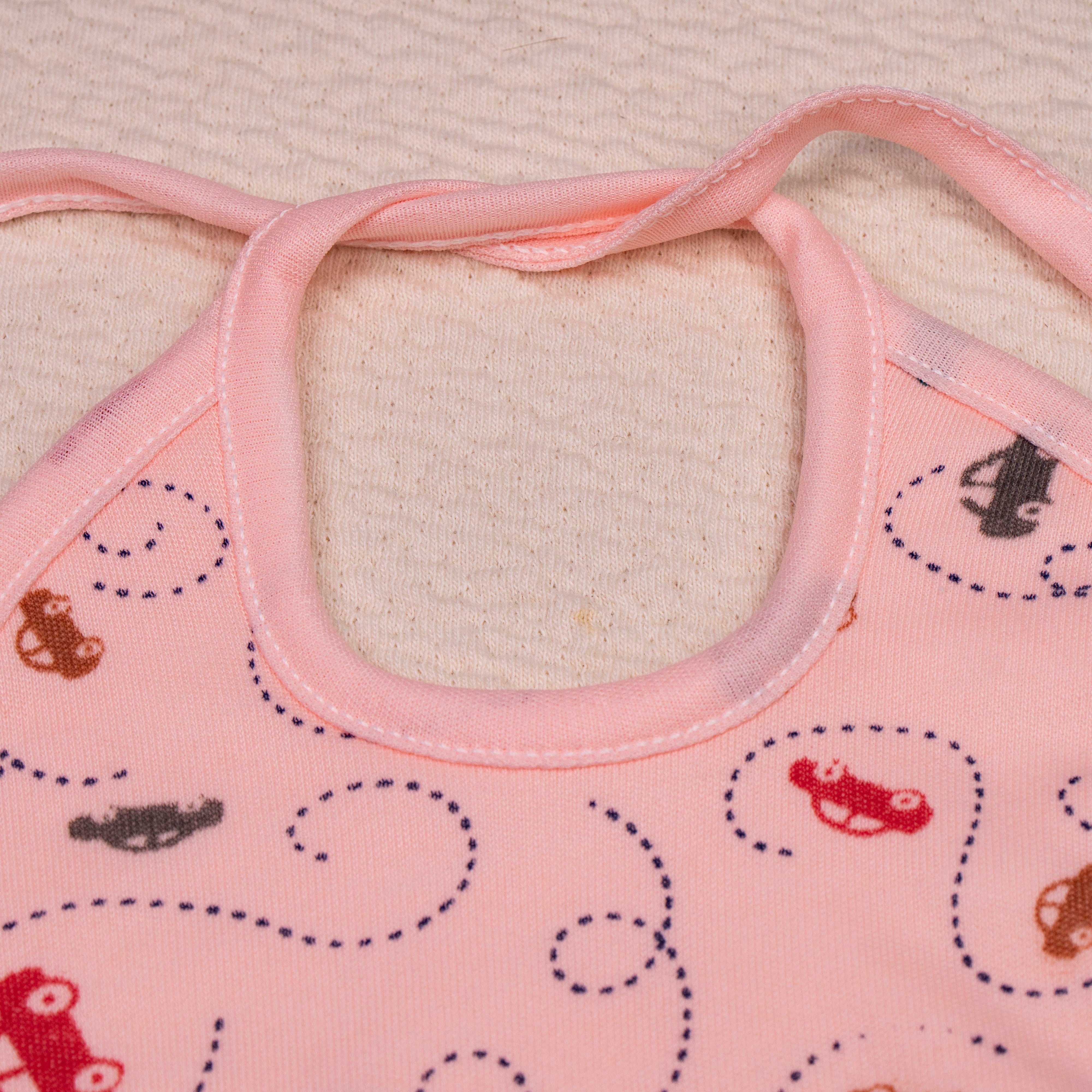 Keep your little one clean and comfortable with this set of three medium-sized bibs. Made from a soft, absorbent fabric, these bibs feature a charming pastel car print. The back is a soft, terrycloth-like material, providing extra absorbency to catch every spill and dribble. The convenient tie closure ensures a secure and comfortable fit.