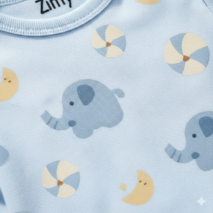 ✔ Printed light blue Bodysuit with Elephant Pattern