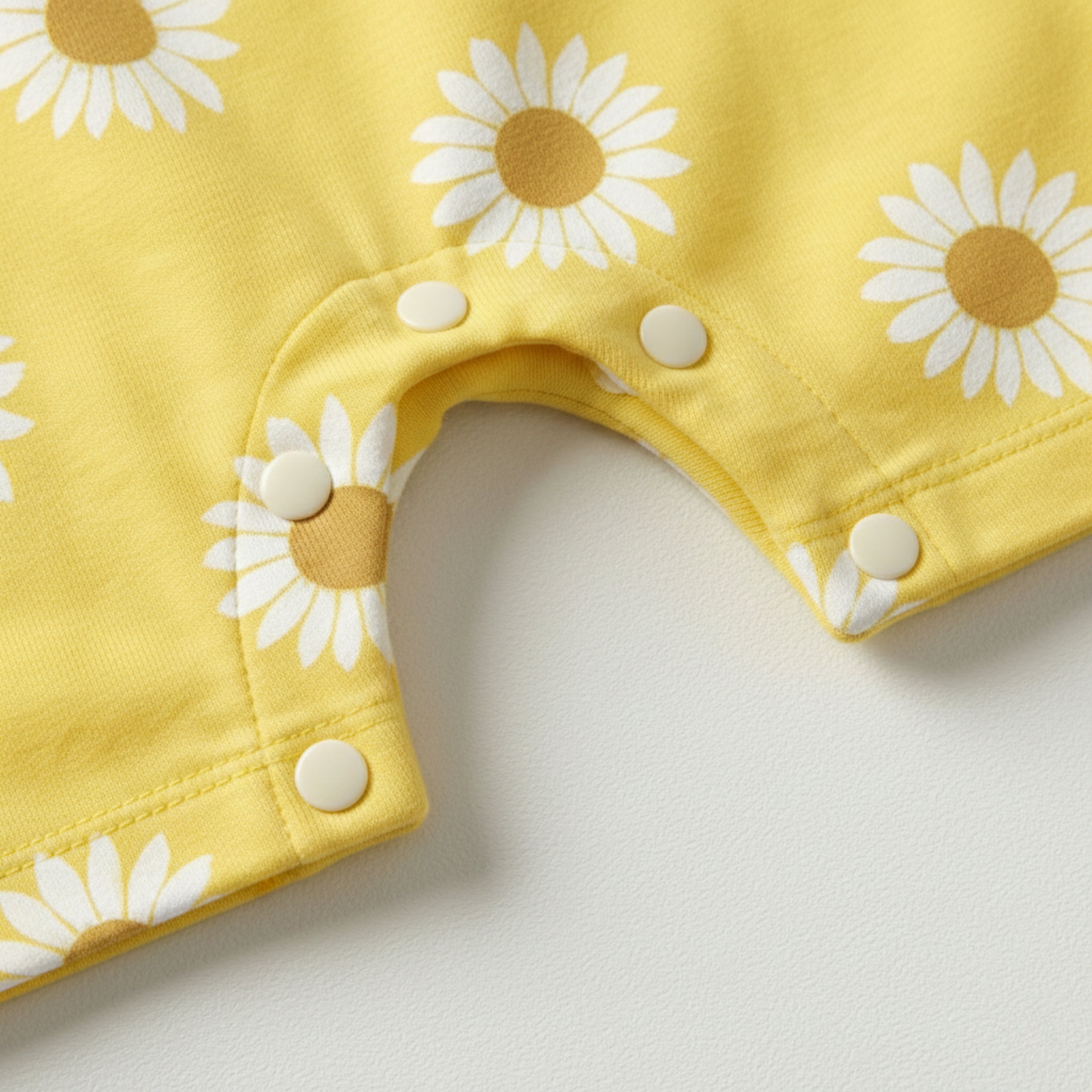 Designed with comfortable straps and snap buttons for easy changing, this romper is made from soft interlock poly-cotton fabric that feels smooth, breathable, and gentle on your baby’s delicate skin.