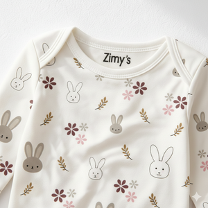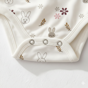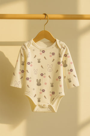 ✔ Printed White Bodysuit with Bunny & Floral Pattern