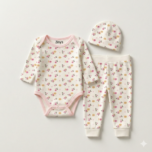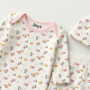 Wrap your little one in the soft charm of the Pink Petals 3-piece set. Featuring a bodysuit with an all-over pink and yellow petals print in soothing pastel tones, a matching pajama, and a cozy cap, this set is perfect for everyday comfort. Designed for style and snuggles, it’s a sweet addition to your baby’s wardrobe.
