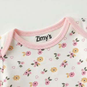 ✔ Bodysuit with All-Over Pink & Yellow Petals Print